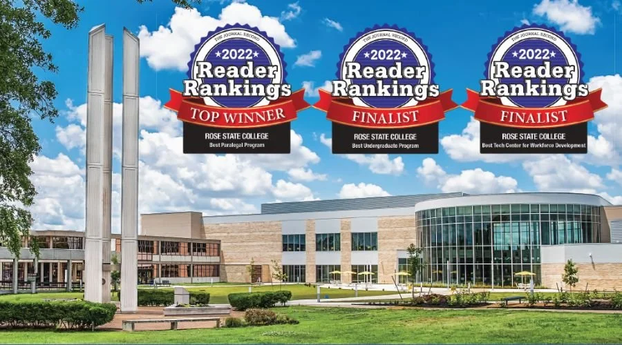 The Journal Record has recognized Rose State College as top-ranked in three categories in the 2022 Reader Rankings. Rose State was named the top winner for Best Paralegal Program in the state and was a finalist in the Best Undergraduate Program and Best Tech Center for Workforce Development categories. Rose State was up against colleges and universities across Oklahoma and was the only community college to receive a top ranking.
