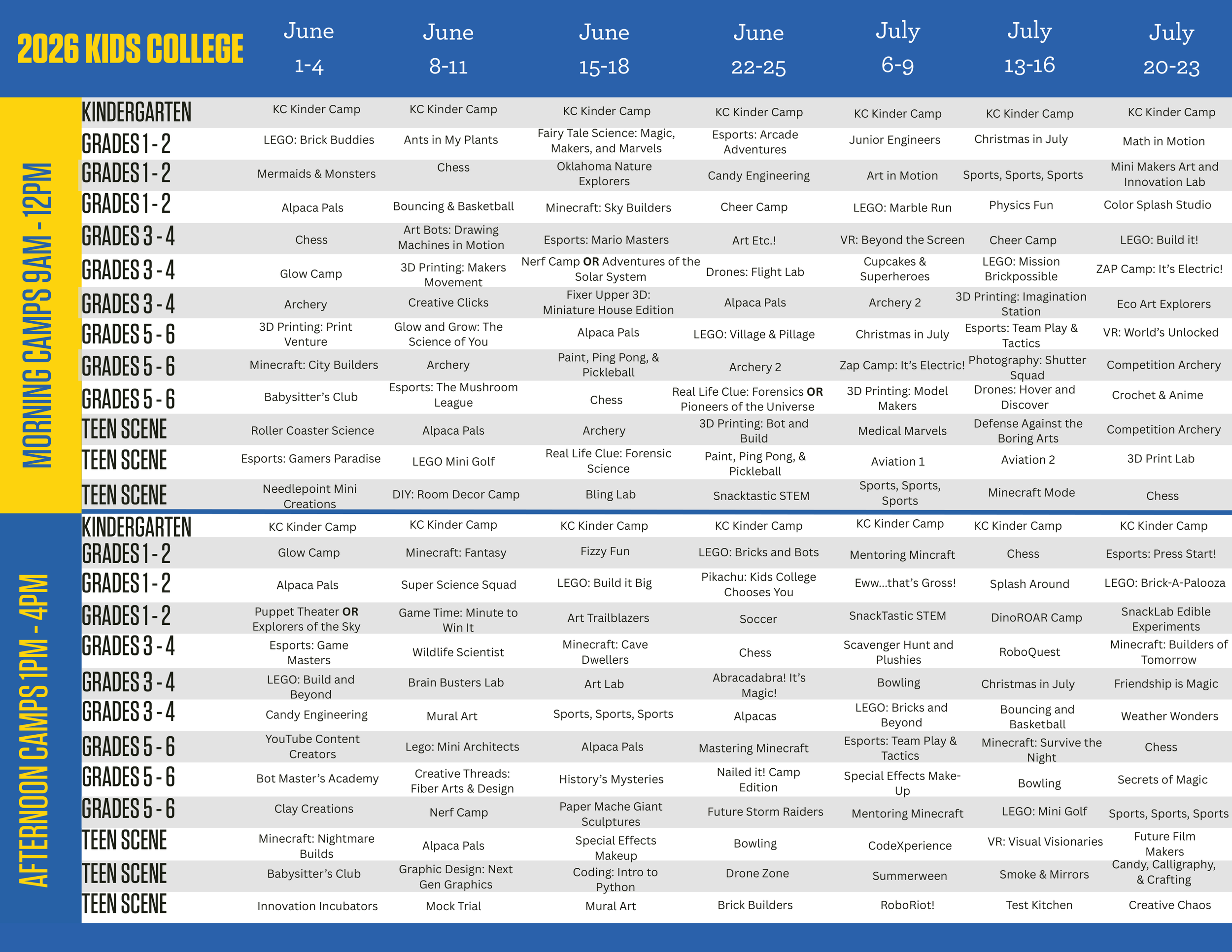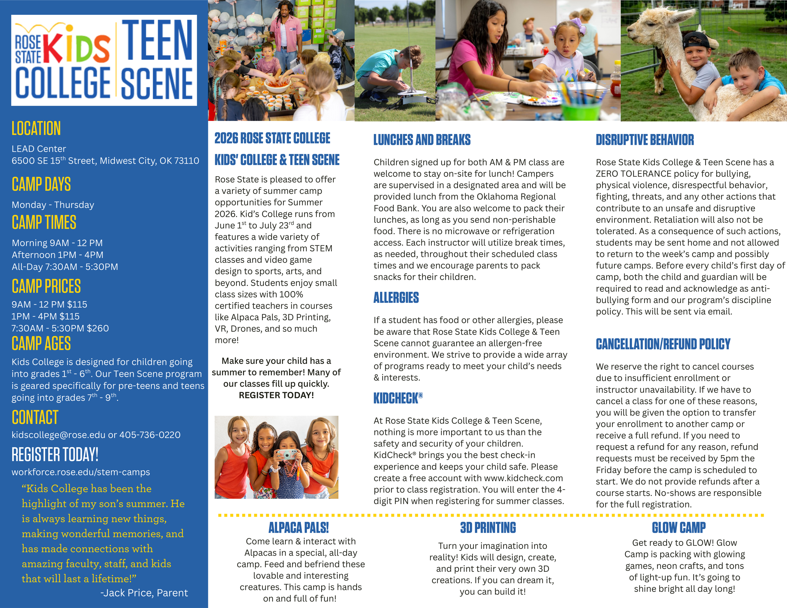 Rose State College’s K-12 camps combine engaging activities with expert instruction to create unforgettable learning experiences. With hands-on projects and real-world insights, students gain knowledge, skills, and inspiration to explore their future.